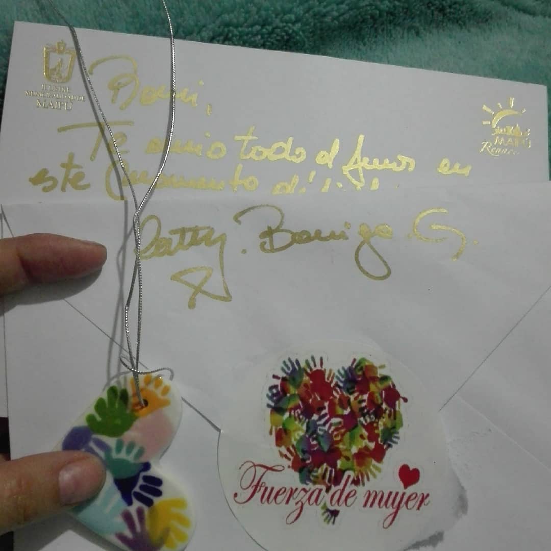 "Hoy lloré nuevamente, pero de emoción. Hoy mi gran compañera y amiga Cathy Barriga, alcaldesa de Maipú, se tomó el tiempo para este hermoso regalo de fe y esperanza", comenzó relatando en la publicación donde enseña el detalle que su amiga tuvo con ella.