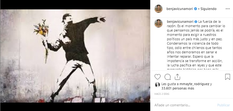 En Instagram Stories, por su parte, Benjamín Vicuña compartió imágenes de la más reciente marcha con la palabra 'legitimidad'.
