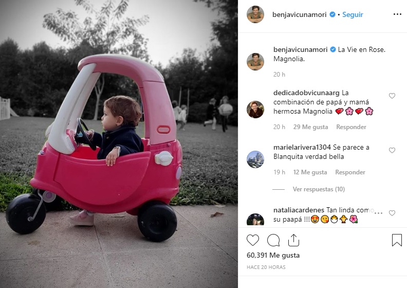 El actor Benjamín Vicuña se mantiene conectado con sus fanáticos a través de su cuenta de Instagram, donde comparte varios registros de su día a día, que varias veces incluye a su actual pareja, 'China' Suárez y la pequeña hija de ambos, Magnolia.