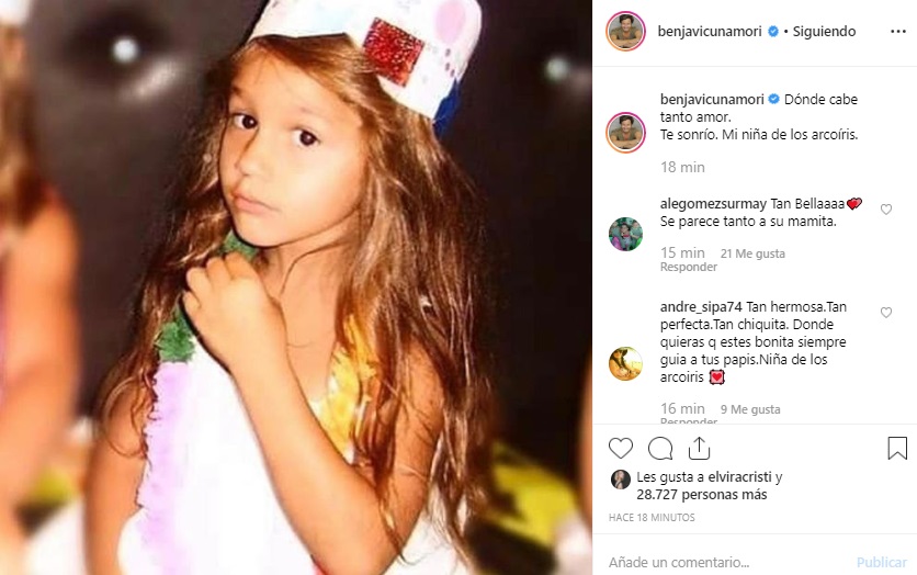 "Dónde cabe tanto amor. Te sonrío. Mi niña de los arcoíris", escribió Benjamín para acompañar la postal.