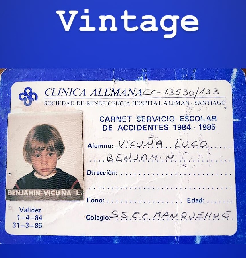"Vintage", escribió el actor de 39 años para acompañar la imagen de 1984, correspondiente a un carnet de salud escolar.