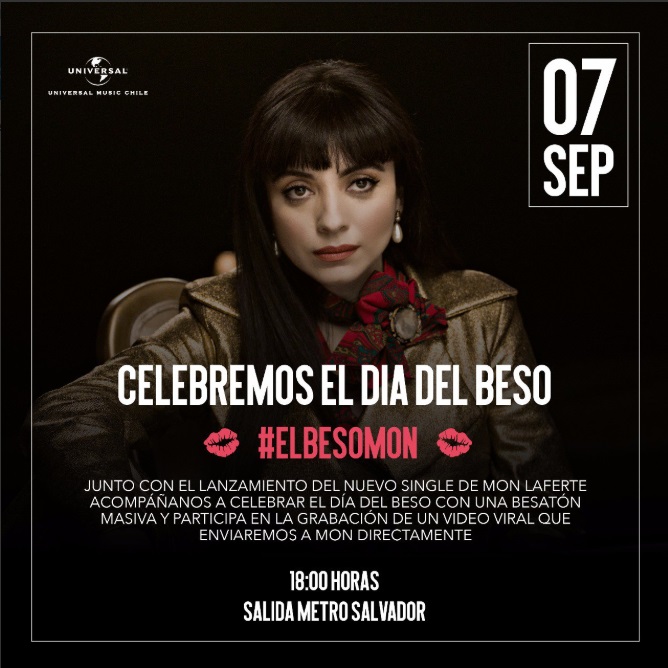 Además de ser una iniciativa por la nueva canción de nuestra querida Mon, también es una convocatoria para conmemorar el "Día del Beso" y realizar un vídeo viral que se enviará a Mon Laferte directamente de parte de Universal Music que está realizando la convocatoria que parte a las 18:00 horas.