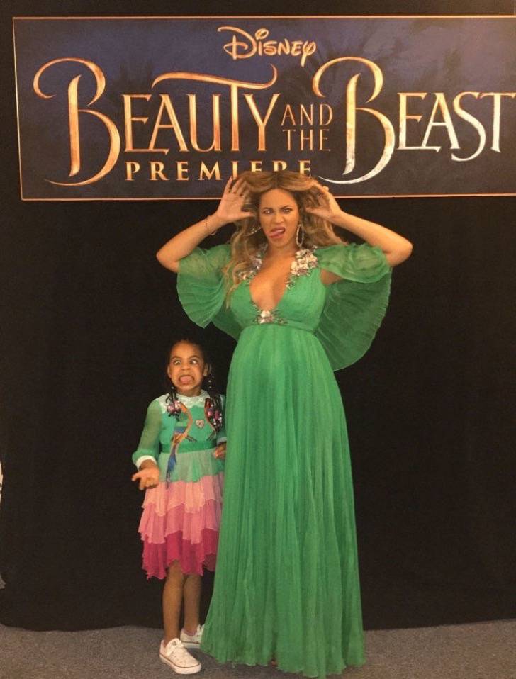 Según informó el medio The Hollywood Reporter, Beyoncé asistió al estreno junto a su familia y luego publicó las fotos en su redes sociales para demostrar que ella y su hija fueron vestidas muy combinadas. También la artista aprovechó de lucir su embarazo, del cual espera gemelos.