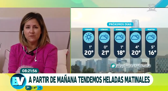 Es tradición que la meteoróloga inicie la transmisión del programa con su reporte del tiempo y aunque hoy Adam decidió no ir a trabajar debido al resfrío que la tiene con fiebre y tomando antibióticos, el equipo del matinal llegó hasta su casa para que a las 8:16 hrs hiciera su despacho.