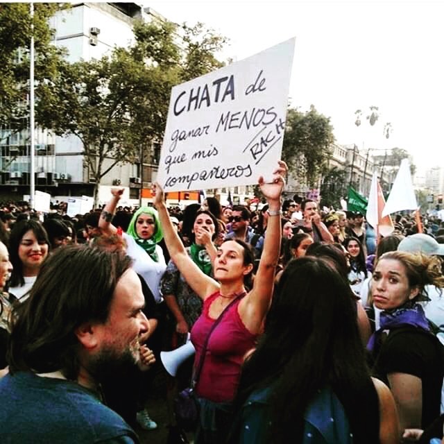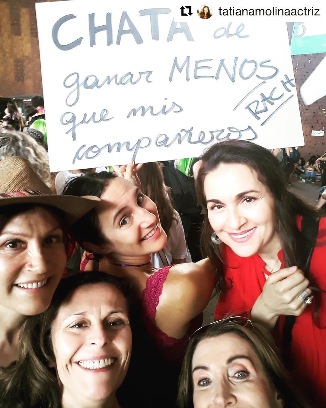 La intérprete que hoy brilla en pantalla con su rol de 'Maite' en "Pacto de sangre" asistió a la manifestación con un cartel que decía: "CHATA de ganar menos que mis compañeros".