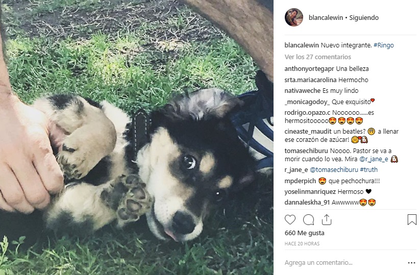 Se trata de un tierno cachorrito que llegó a sumarse al hogar que Blanca comparte con su pareja, el periodista Daniel Matamala y sus dos hijos; Marina y Eloy.