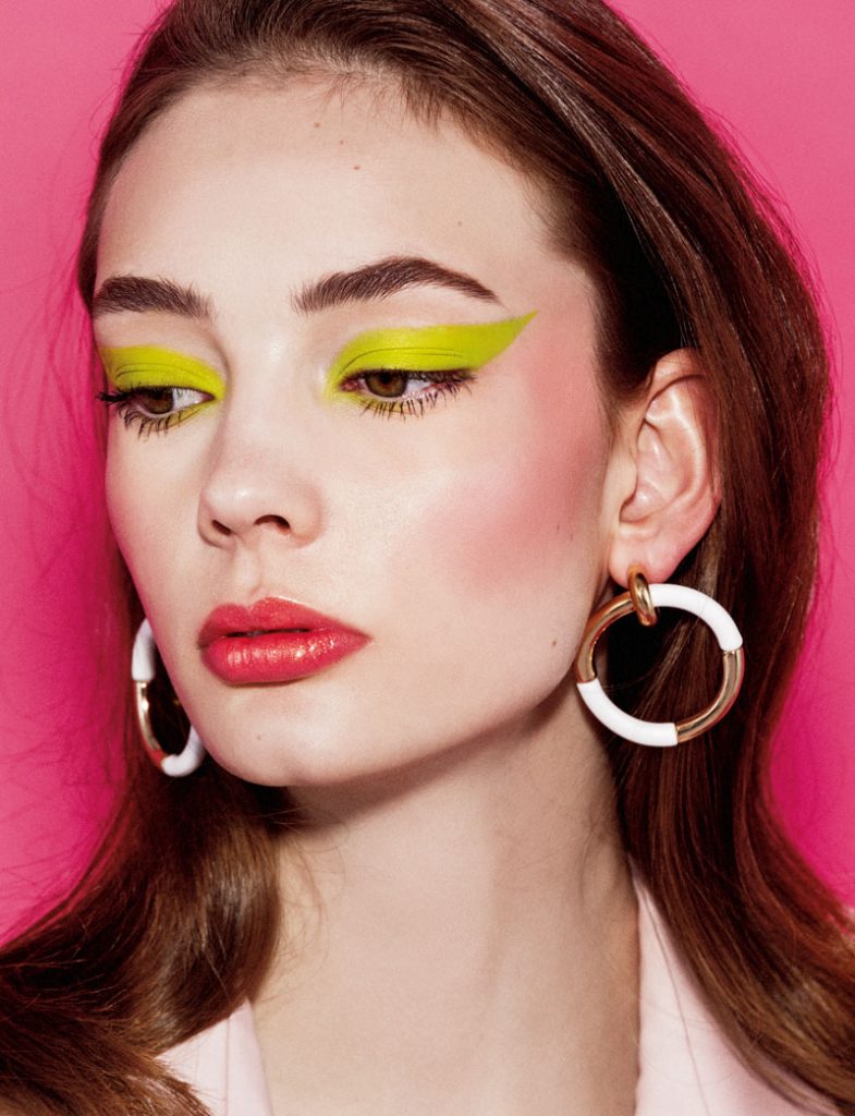 La técnica se basa en elegir una tono llamativo y aplicarlo de modo gráfico, sin difuminar, para que sea el protagonista del look.