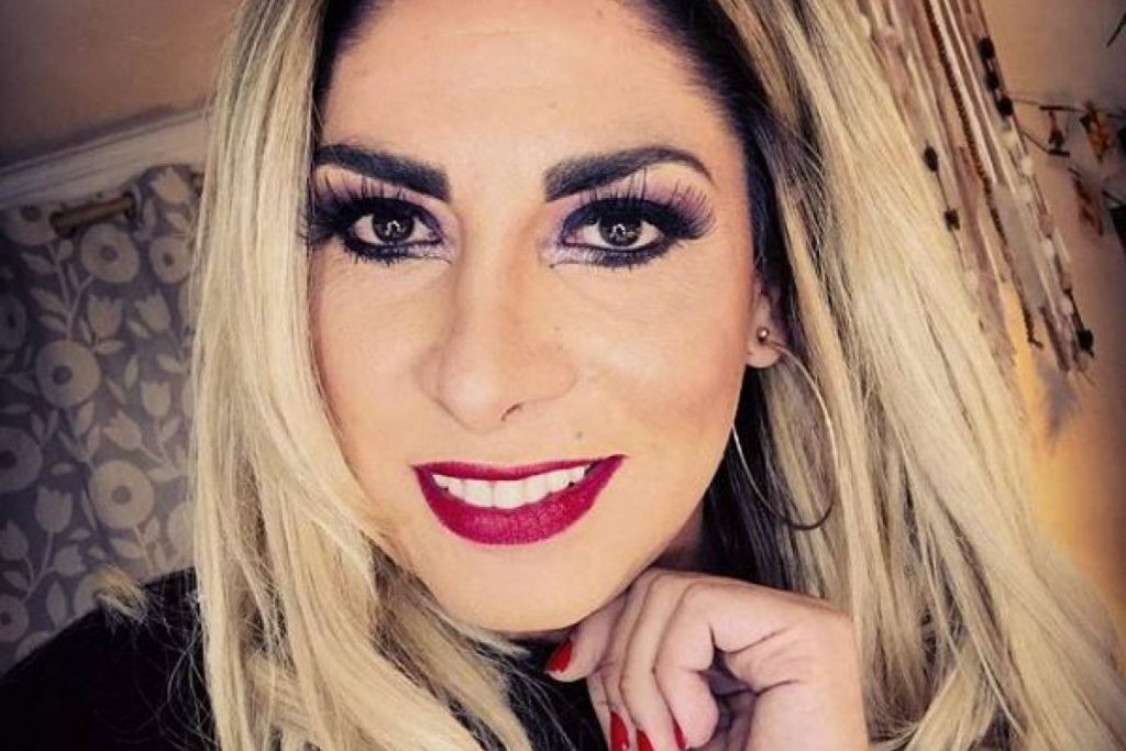 Y es que además de la peluca, tiene un maquillaje con las cejas marcadas, una sombra rosada al igual que su pelo y labios más oscuros.