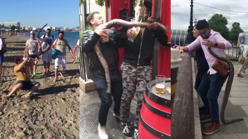Imagina ir caminando por la playa junto a tus amigos cuando, de manera sorpresiva, salta encima de ti una enorme serpiente.
