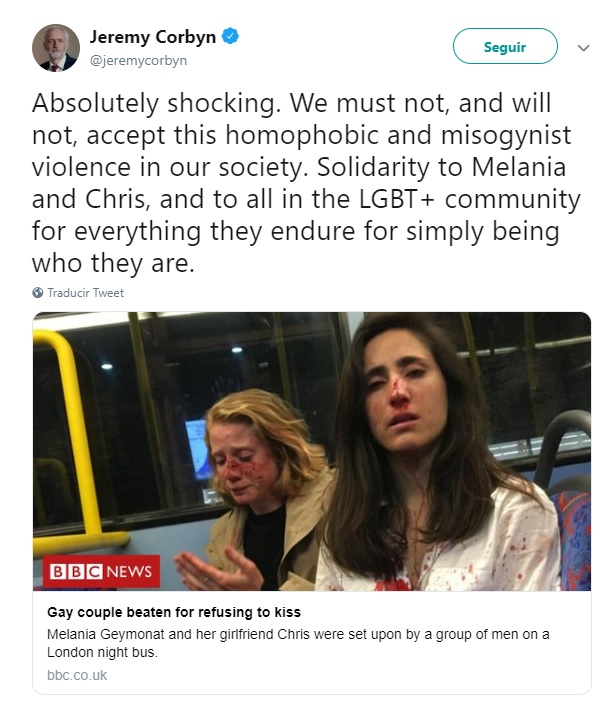 Repercusión mundial ha tenido el caso de dos mujeres lesbianas que fueron brutalmente agredidas por un grupo de hombres en un autobús en Londres.