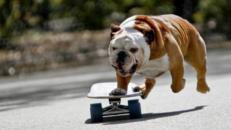 Si hay una raza de perro que sabe subirse a una patineta son los bulldog. Hay algo que los conecta y es que tienen una facilidad impresionante para subirse, equilibrarse y además darse vuelto para seguir avanzando.