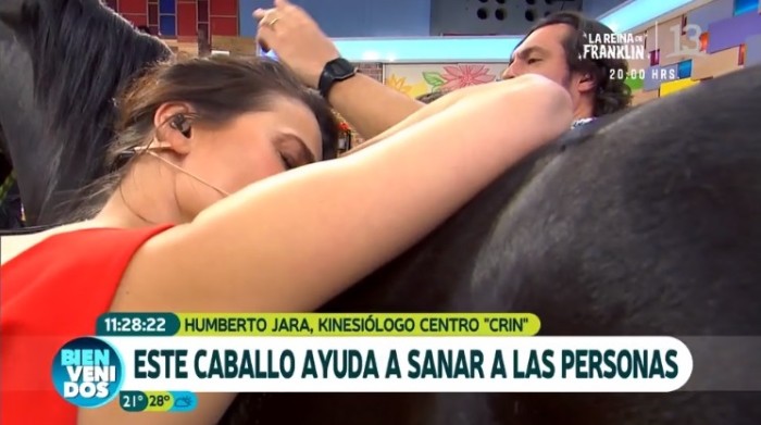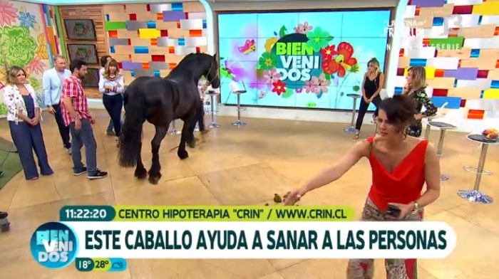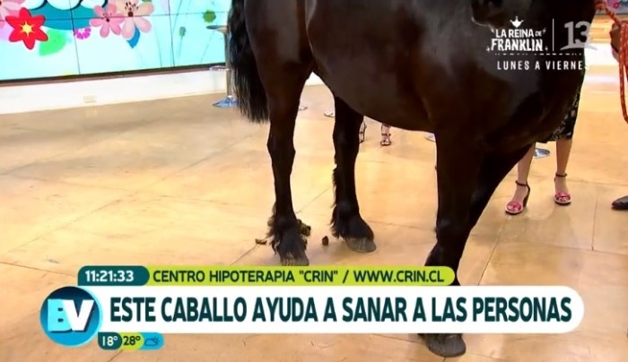 Los conductores y los panelistas quedaron maravillados con el caballo desde el momento en que entró al estudio, por lo que se acercaron a acariciarlo y a hablar con el experto que relató las experiencias con esta terapia.