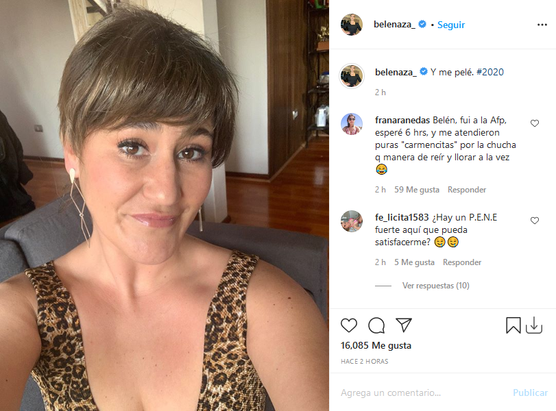 A través de su cuenta de Instagram, Belén Mora publicó la foto con el cambio de look, siempre fiel a su humor. "Y me pelé", escribió en la publicación.
