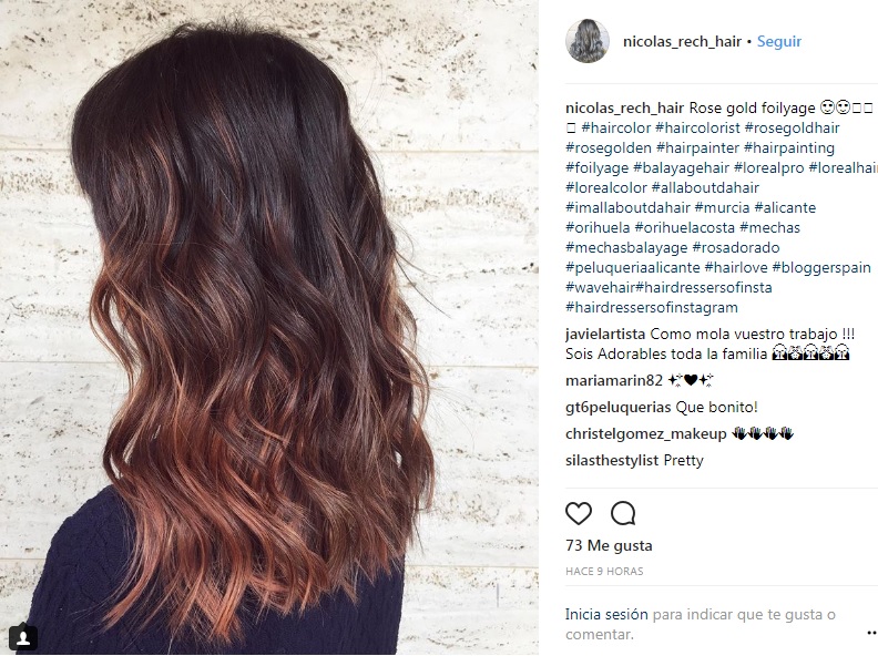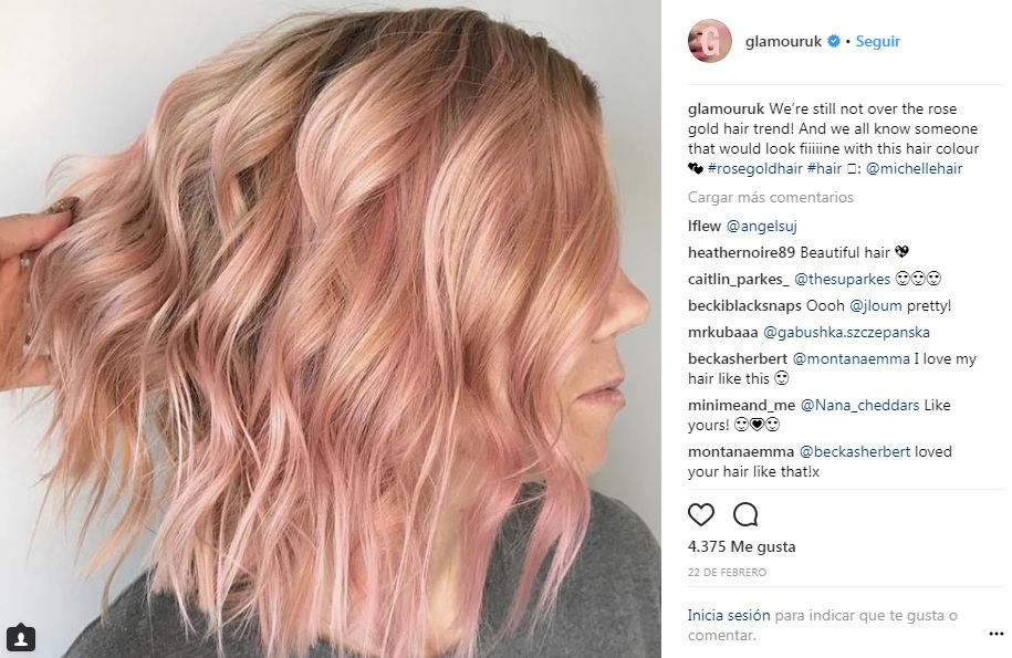 Según la publicación, esta tendencia mezcla subtonos dorados con rosas para un resultado digno del mejor vino "rosé". Puede hacerse en todo el cabello o en mechas, incluso en melenas oscuras decolorando previamente las puntas en un 'balayage'.