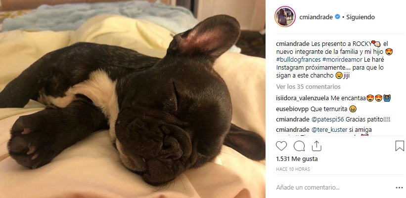 Se trata de un tierno cachorro bulldog francés llamado Rocky, con el que derritió a sus seguidores en Instagram.