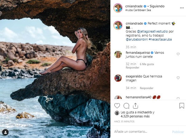 'Perfect moment ✨📸 Gracias @jetlagcreativestudio por registrarlo, amo tu trabajo!', escribió Andrade para acompañar la paradisíaca postal.