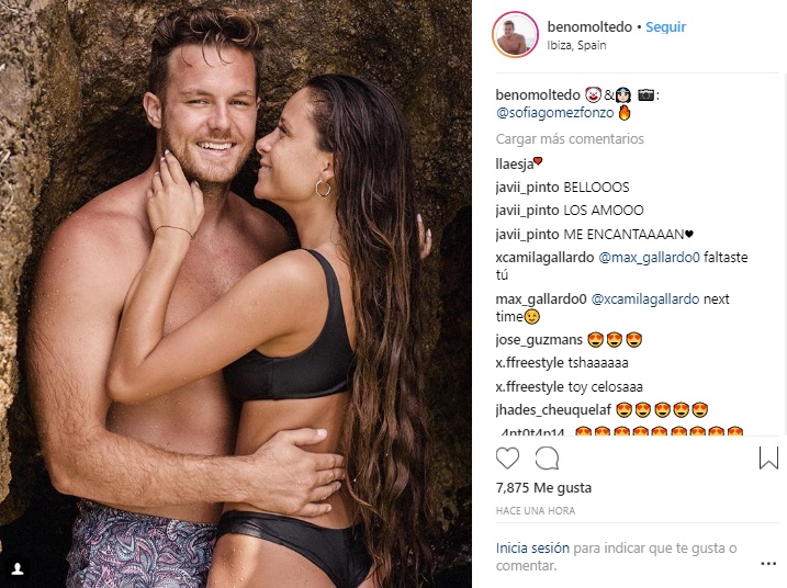 Únicamente con el emoticon de la miel, la cantante chilena acompañó la foto que publicó en su cuenta de Instagram y en la que ambos aparecen disfrutando de algún paraje en Ibiza.
