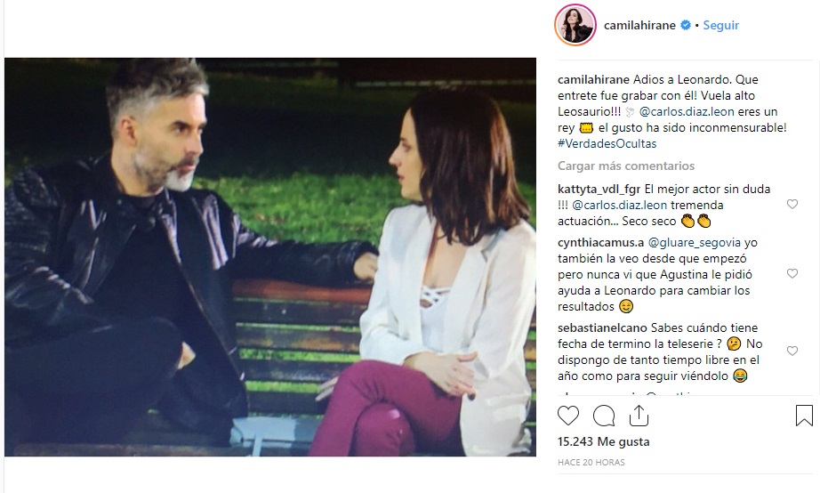 Una de ellas fue la actriz que interpreta a "Rocío", Camila Hirane, quien publicó un mensaje de despedida al villano en su cuenta de Instagram.
