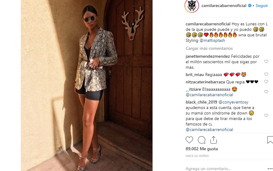 El look eso sí, es en colaboración con su estilista personal, Mattias C-Vásquez. La publicación ya lleva sobre 90 mil "Me gusta" y cientos de elogios como "Regia", "Estupenda y simpática", y "divina".