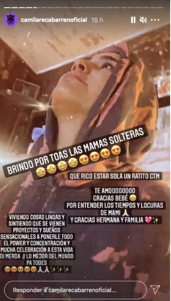 Hay que recordar que el 13 de abril Camila Recabarren hizo un brindis por las madres solteras. La influencer pasa gran parte de sus días en compañía de su hija Isabella. Sin embargo, aprovechó un tiempo de soledad para referirse a aquellas mujeres que son mamás y papás a la vez.