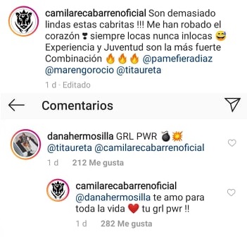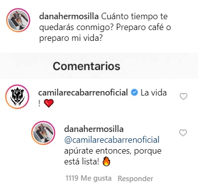 Y eso no fue todo, pues la ex "Miss Chile" aprovechó de gritar nuevamente su amor por su polola a los cuatro vientos en su cuenta de Instagram. Luego de recibir un comentario de Hermosilla en una publicación, Camila le escribió: "Te amo para toda la vida".