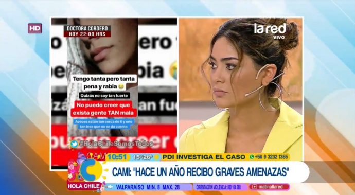 Por primera vez Camila Recabarren se refirió en televisión al hostigamiento del que ha sido víctima hace más de un año, y lo hizo nada más que en el mismo programa del que es panelista, el matinal "Hola Chile".