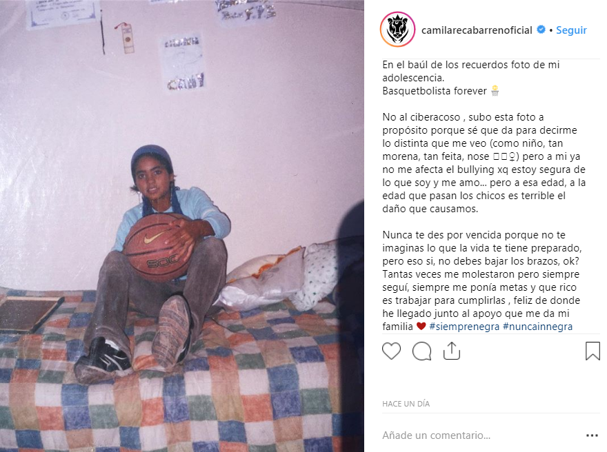 Durante el fin de semana Camila Recabarren sorprendió al compartir una foto de su adolescencia. En los comentarios hizo un potente mensaje contra el bullyng y el acoso.