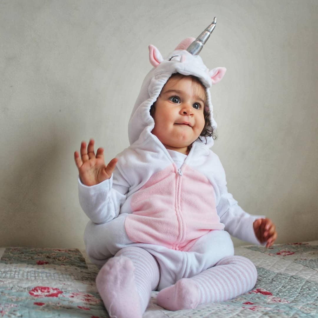 La pequeña se luce con su traje de unicornio, uno de los que están de moda entre los niños hoy.