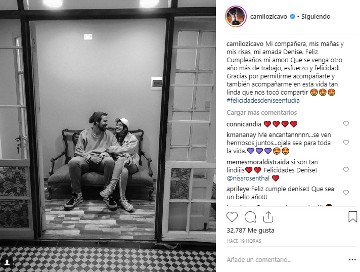 Denise Rosenthal cumplió 29 años este jueves y su pololo, Camilo Zicavo, vocalista del grupo Moral Distraída, le dedicó un emotivo mensaje a través de su cuenta en Instagram.