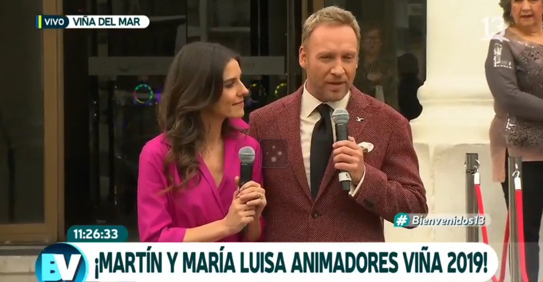 La transmisión de la pasada mañana fue la oportunidad para que TVN y Canal 13 transmitieran la presentación de sus anfitriones para el Festival de Viña del Mar, María Luida Godoy (TVN) y Martín Cárcamo (Canal 13).