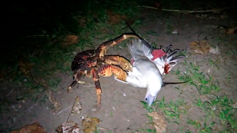 El ave estaba durmiendo sobre una rama que estaba a poco menos de un metro de un árbol, que el cangrejo trepó lentamente. Un par de minutos después, otros cangrejos, atraídos por la sangre, llegaron hasta el lugar y despedazaron al ave.