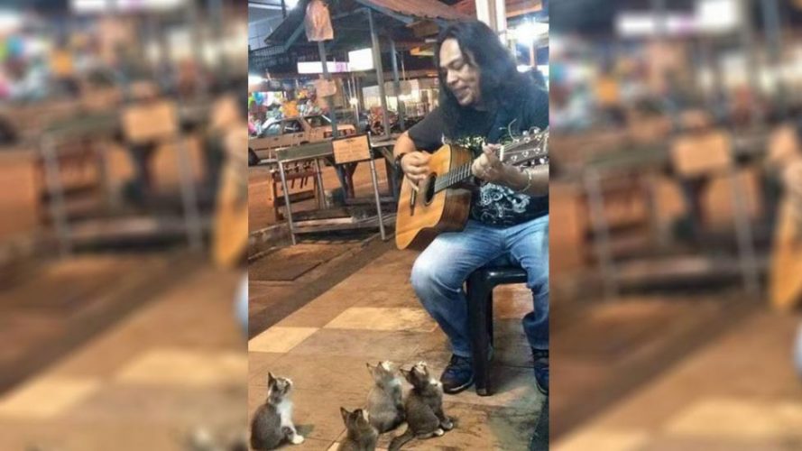 Muchas veces los artistas callejeros se quejan de que su arte se toma muy poco en cuenta. Sin embargo, un cantante que toca en las calles de Malasia, llamó la atención de tiernos gatitos que se sentaron frente a él solamente para escuchar su voz por varios minutos.