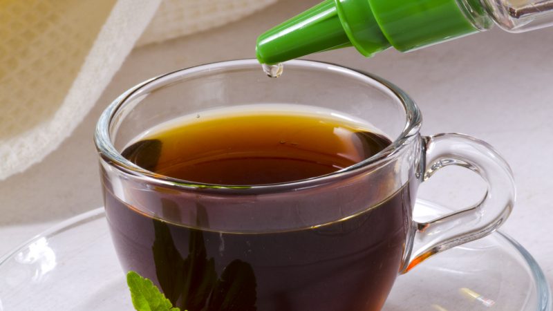 La stevia, aplicada como un término general para todos los edulcorantes derivados del arbusto stevia, son endulzantees 300 veces más dulces que la sacarosa, y tienen la particularidad de tener cero calorías por porción, y son relativamente seguros para el consumo humano.