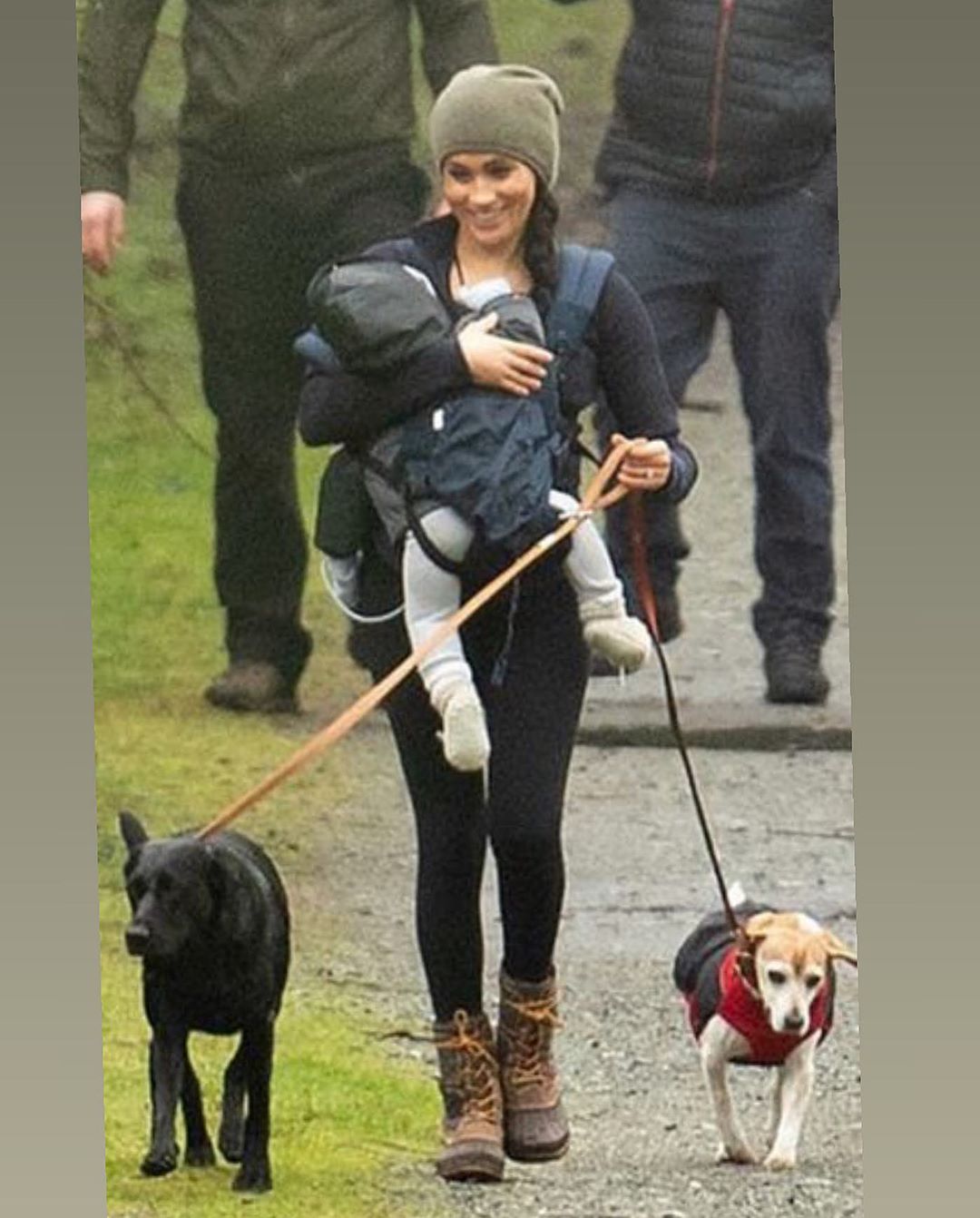 Y es que la duquesa de Sussex fue vista paseando en un parque en Canadá junto a Archie y sus dos perros, OZ y Guy. Las imágenes fueron filtradas por el "Daily Mail", y en ellas se ve a Meghan llevando a su hijo en un portabebé, mostrándose muy sonriente.