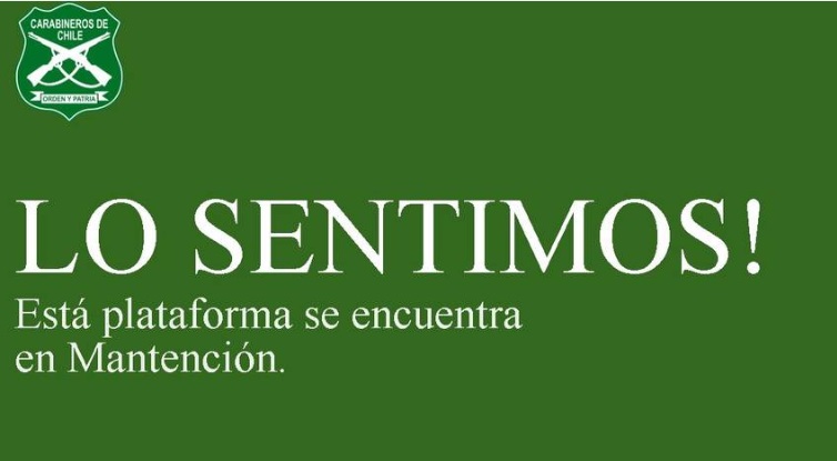 'Lo sentimos, esta plataforma se encuentra en mantención', se lee al ingresar a la página web de Carabineros.