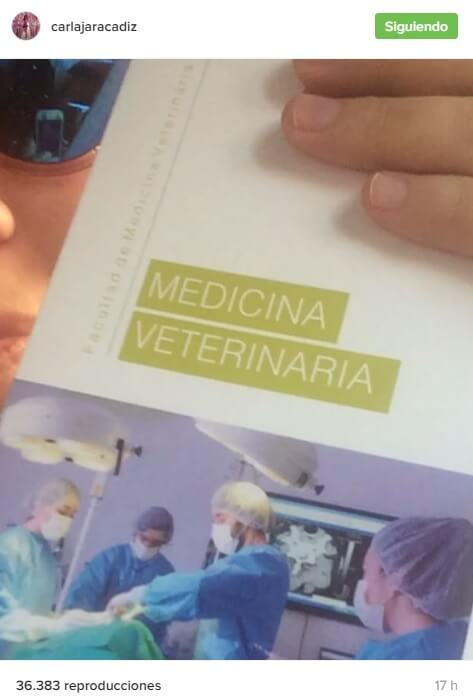 Como amante de los animales, Carla decidió ingresar a estudiar medicina veterinaria. Ella misma lo contó a través de su cuenta de Instagram. "Cumpliendo un sueño! Voy con todo!!! Estoy tan feliz!!! Podré ayudar a tantos animalitos!!! #Vet#nuncaestarde", escribió