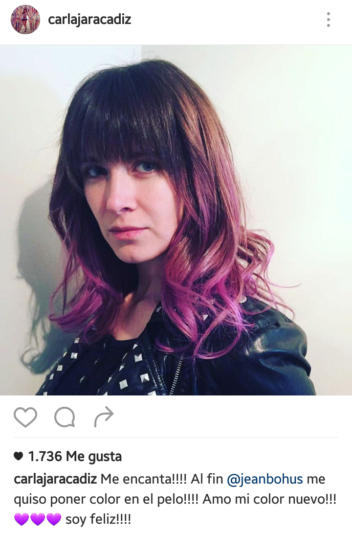 Nuevamente el peluquero de moda de las famosas chilenas, Jean Bohus, fue el encargado de la nueva imagen de Carla, quien quedó feliz con el resultado.