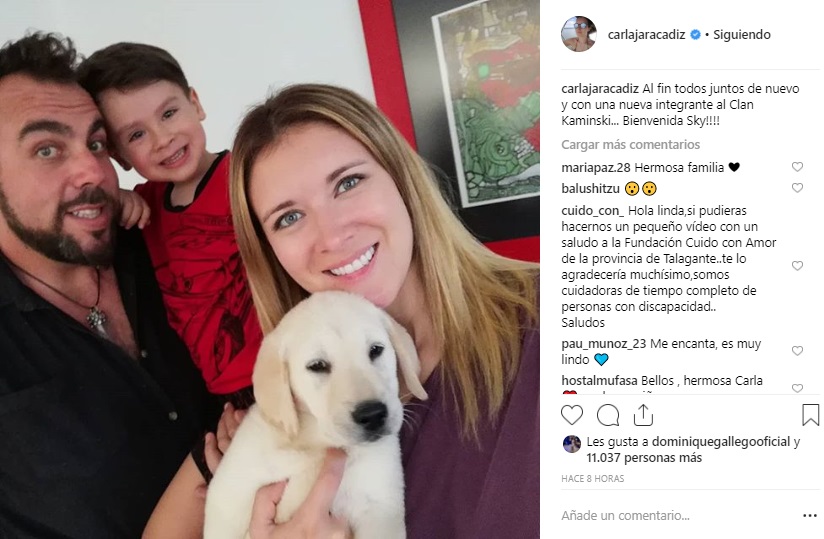 Carla Jara, quien es ferviente amante de los animales y, de hecho, tiene varios perros, compartió una foto de la nueva mascota que llegó a su hogar.