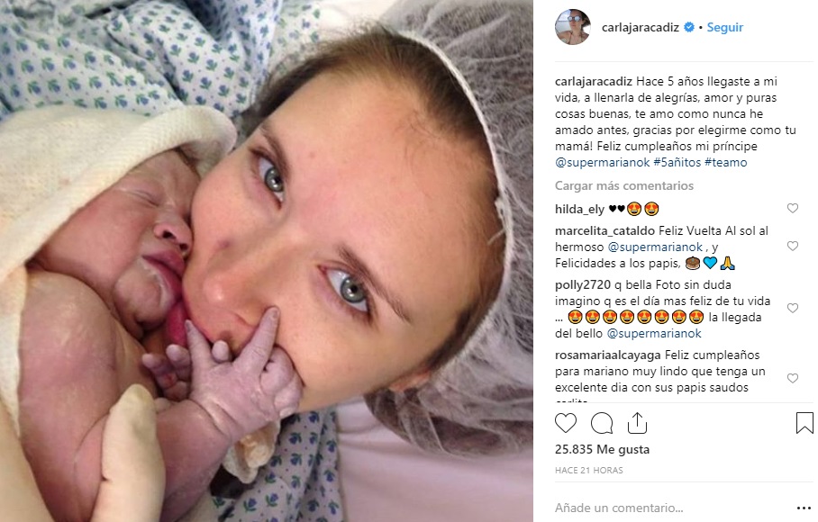 Y en su cuenta la mujer comparte fotos de su vida y familia junto a Francisco Kaminski y su hijo Mariano. Justamente fue por su retoño que 'Carlita' sorprendió a sus fans, al publicar una foto inédita post parto de su hijo.