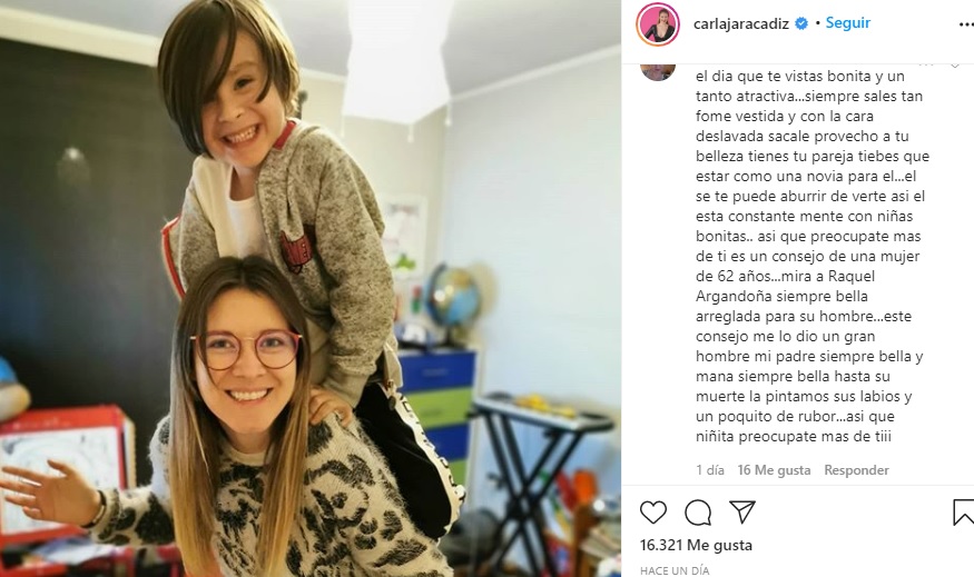 La foto recibió tiernos comentarios, por lo que nadie se esperaba que una usuaria dejara una dura crítica a Jara. Esta persona le llamó la atención a la actriz por 'no arreglarse' y 'no preocuparse' de ella.