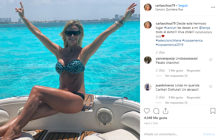 La modelo se encuentra disfrutando con su familia en estas playas de México. "Desde este hermoso lugar #cancun les deseo a mi @larojatodo el éxito!!! Viva chile!!". La foto tiene más de 4 mil me gusta en la red social. fue lo que escribió en redes.