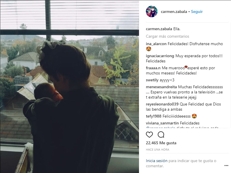 En la tarde de este miércoles, Carmen Zabala sorprendió a sus seguidores al publicar en Instagram la primera foto con su bebé entre sus brazos.