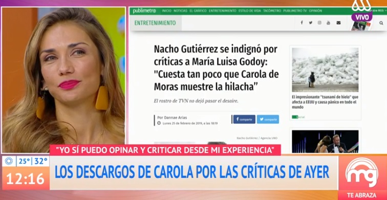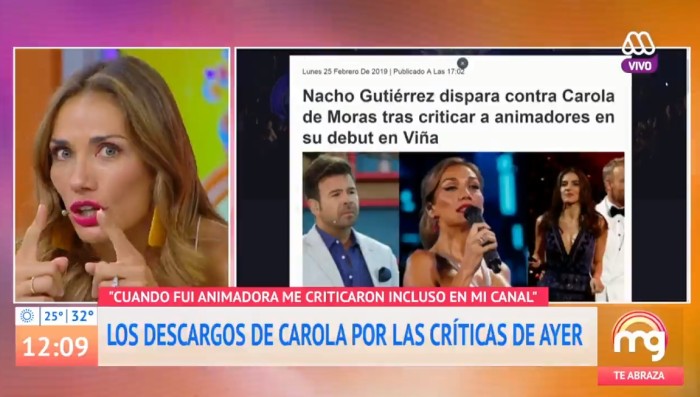 Sus dichos molestaron especialmente al Ignacio Gutiérrez, quien en "Muy buenos días" de TVN, defendió a su compañera. “Cuesta tan poco que Carola de Moras muestre la hilacha”, lanzó el actual animador del espacio matutino.
