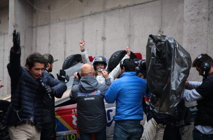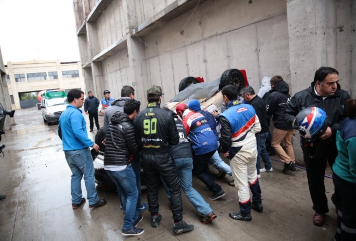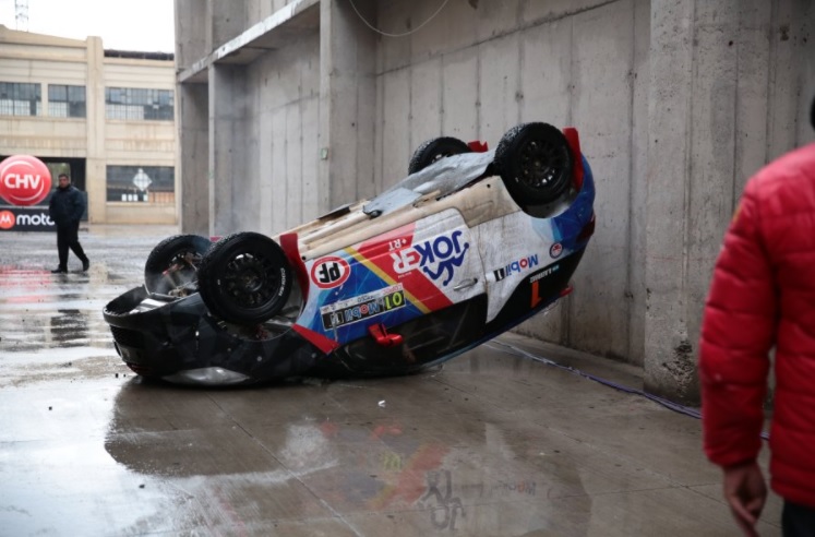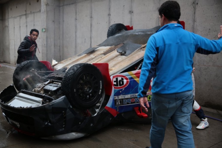 El piloto perdió el control, con lo que auto se volcó. Rápidamente, todo el equipo se acercó a ver cómo estaba la ex modelo. Afortunadamente, salió ilesa, debido a las medidas de seguridad del auto.