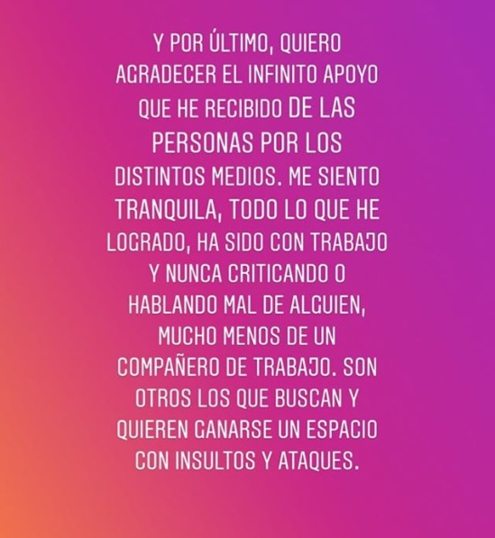 Finalmente, la animadora de "La mañana" de Chilevisión agradeció el apoyo brindado.