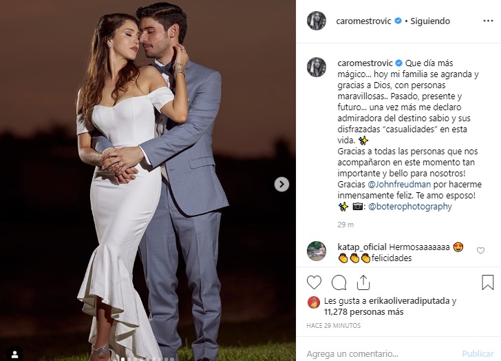 "Gracias a todas las personas que nos acompañaron en este momento tan importante y bello para nosotros! Gracias @Johnfreudman por hacerme inmensamente feliz. Te amo esposo!", escribió la ex animadora de Chilevisión.