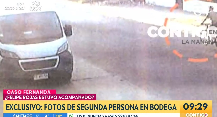 Este registro fue mostrado esta mañana de jueves en "Contigo en la mañana" de CHV, donde se ve a “un segundo y desconocido personaje saliendo de la bodega el mismo día en que la joven embarazada desapareció, y otra donde se ve a Felipe realizando la misma acción”.
