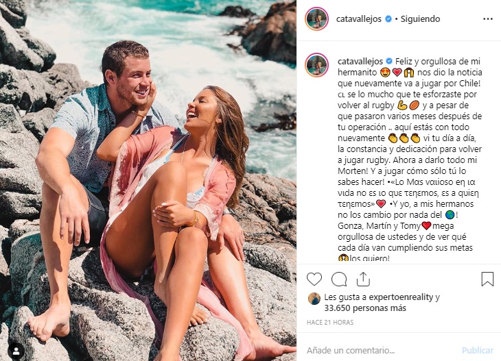 'Feliz y orgullosa de mi hermanito. Nos dio la noticia que nuevamente va a jugar por Chile! Sé lo mucho que te esforzaste por volver al rugby y a pesar de que pasaron varios meses después de tu operación... aquí estás con todo nuevamente'.