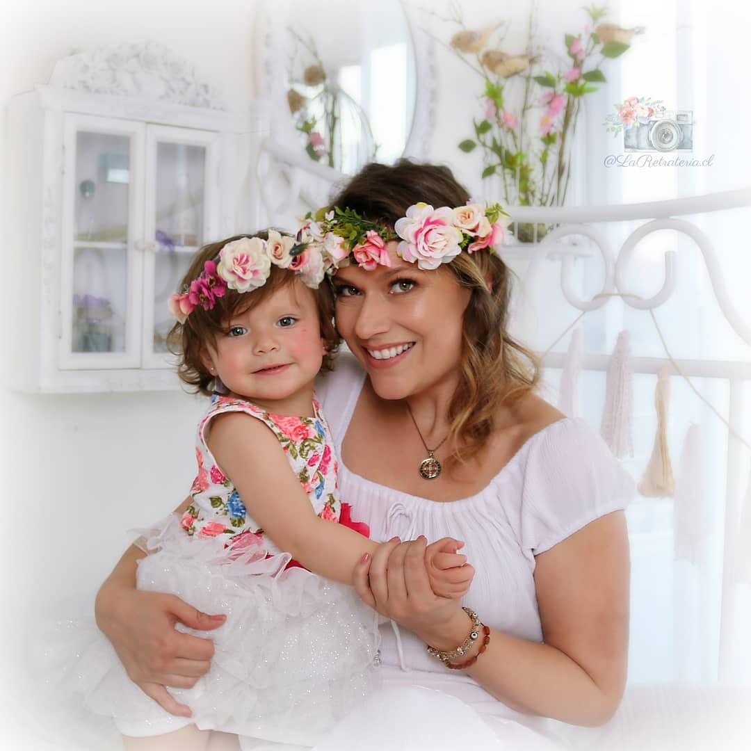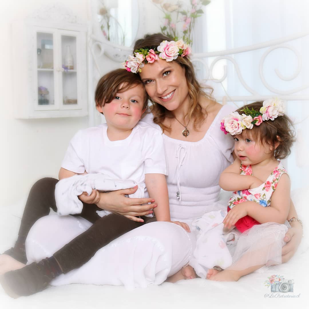 En las fotos la actriz aparece de blanco y con corona de flores al igual que su pequeña Gala y Milán, su hijo mayor también hace de lo suyo con polera blanca.