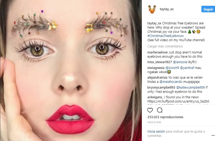 Hasta hace unos días, el hashtag #ChristmasTreeEyebrows no existía y ahora ya acumula más 220 publicaciones con imitaciones de este makeup navideño. Cejas con estrellas, pintura verde, pedrería y otras manualidades ya comienzan a inundar la web.
